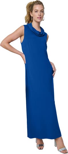 - Chic, fun, and fashionable, this cowl neck maxi dress will become your new go-to for dinner dates and special occasions. The cowl neckline beautifully showcases delicate jewelry while the slightly fitted bodice flatters your figure. Complete the look with a pair of stunning shoes. Slightly fitted silhouetteSlightly flared hemDraped cowl neck55&rdquo lengthRayon/ spandexMachine washableImported