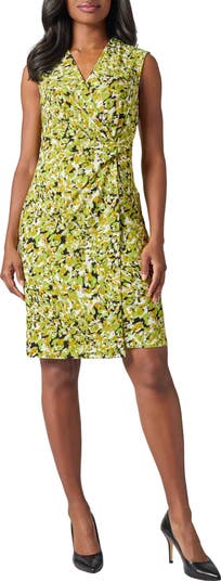 Showered in flowers and gracefully draped to one side, this desk-to-dinner sheath is ready for warm weather outfit opportunities.