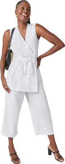 - Lightweight linen-blend fabric with airy drape and breathable comfort