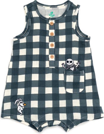 Dress your little one in this adorable Disney outfit and get ready for a day filled with Disney magic! This fashionable sleeveless romper features a cute henley top, an easy-to-dress snap closure, and a cool plaid design with vibrant embroidered artwork of favorite characters like Mickey Mouse, Winnie the Pooh, Simba from The Lion King, or Jack Skellington and Zero from Nightmare Before Christmas that your future Disney fan will love to wear! Made of soft 100% cotton gauze for all day comfort, this stylish Disney one-piece jumpsuit is a fun spring and summer wardrobe essential!