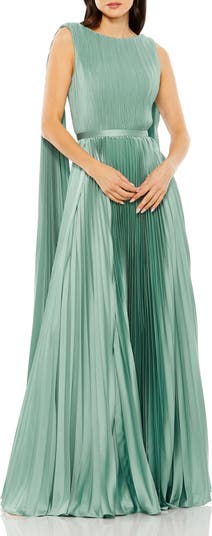 Sleeveless High Neck Cape Back Heat Pleated Gown