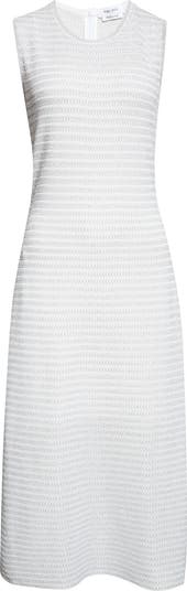 Metallic fibers give a luxe sheen to this knit dress that falls effortlessly over your figure.