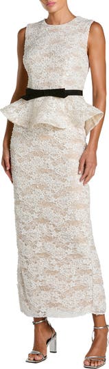 Sleeveless Lace Peplum Top Column Gown With Bow