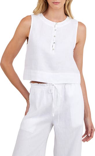 Made from crisp linen, this summery sleeveless top is made in a boxy cropped fit.