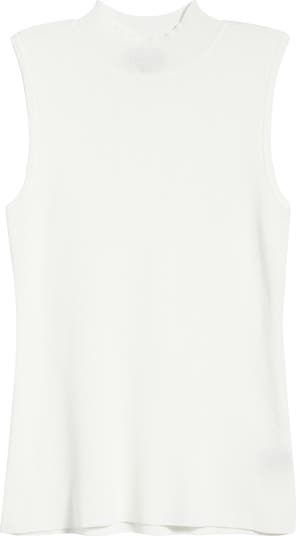Streamline your layers with this sleek sleeveless sweater topped with a warm mock neck and shaped in a smooth, body-skimming silhouette.