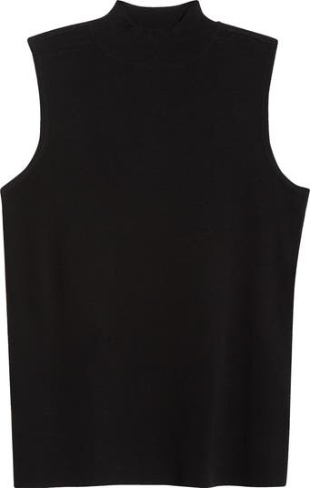 Streamline your layers with this sleek sleeveless sweater topped with a warm mock neck and shaped in a smooth, body-skimming silhouette.