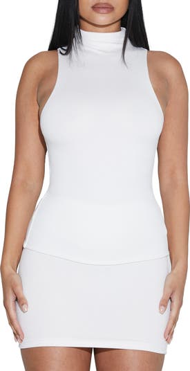 Cut-in armholes flaunt your strong shoulders in this top cut from a crepe double-lined fabric with four-way stretch for a perfect layer or stand-alone style.