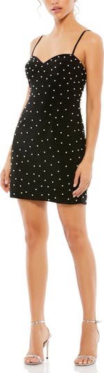 Sleeveless Pearl Encrusted Sweetheart Mini Dress