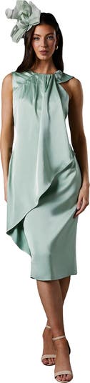 This exquisite Coast satin dress combines contemporary design with timeless sophistication. The gathered neckline and asymmetric overlay create a sculptural effect that catches the light beautifully as you move, whilst the sleek midi silhouette offers a refined finish perfect for special occasions.