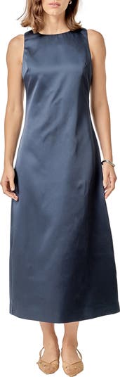 English Factory Sleeveless Satin Midi Dress, Alternate, color, Navy
