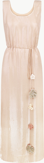 Sleeveless sequin maxi dress featuring a drawstring waist finished with multicolor floral tassels for a playful, handcrafted touch.