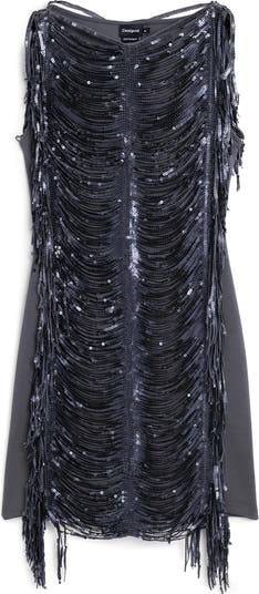 You'll be ready for your moment in the spotlight with this fringed sequin minidress that shimmers and sparkles as you dance the night away.