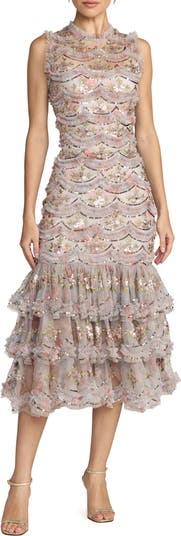 Sleeveless Sequin Tiered Ruffle Midi Dress