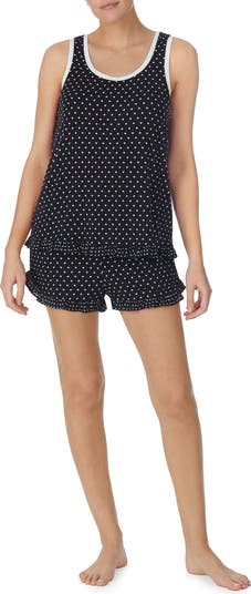 Luxuriate in the lounge-ready comfort of these sleeveless PJs charmed with contrast trim and subtle frills.