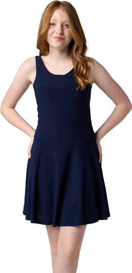 Casual-smart style is easy in this comfy kid-size skater dress that has ample stretch for easy movement.