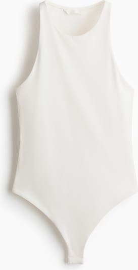 Sleeveless thong body in soft jersey with a narrow cut at the top, racer back and concealed press-studs at the crotch. Lined at the front.