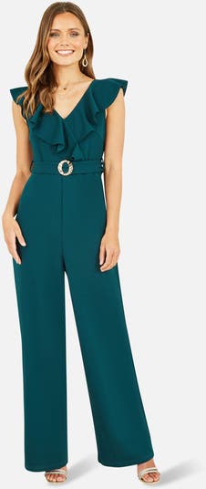 Sophistication served up all in one, this Green Yumi Jumpsuit is perfect for Summer party season. The shoulders are detailed with a frill which continues down into the wrap over neckline, and the gold buckle at the waist adds an extra luxe feel. In a long leg designed, with some stretch for a comfortable fit, we love this piece paired with heels and statement gold jewellery for any invite.
