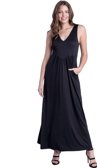 Sleeveless V-Neck Maxi Dress with Pocket Detail