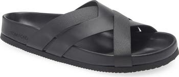 Crisscross straps in smooth and grainy leather top this warm weather-staple sandal furnished with an anatomically-shaped footbed that offers lasting comfort and support.