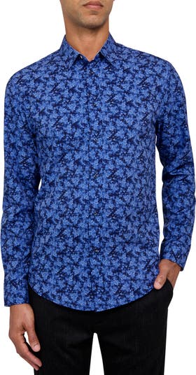 Slim Fit Abstract Floral Recycled 4-Way Stretch Performance Long Sleeve Shirt