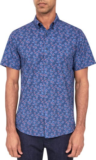 Slim Fit Denim Floral Recycled 4-Way Stretch Performance Short Sleeve Shirt
