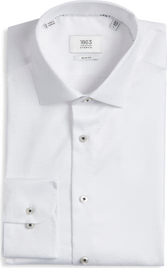 Slim Fit Dot Pattern Non-Iron Cotton Dobby Dress Shirt