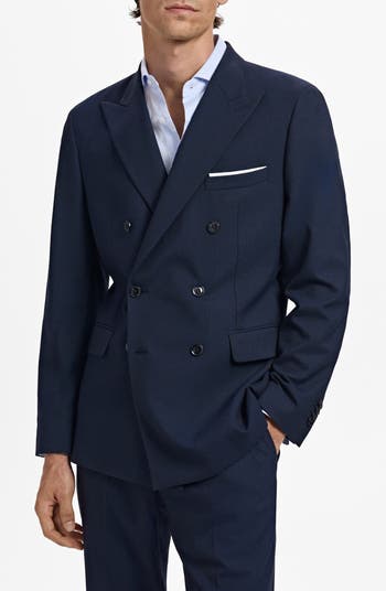 A seasonless blend means all-year comfort in this double-breasted blazer cut in a slim fit for a sharp, streamlined look.