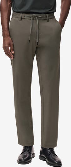 A clean flat front emphasizes the roomy, relaxed fit of easy-wearing pants made from a temperature-regulating fabric with a drawstring in the waist and a crop at the ankles for a sunny-day look.