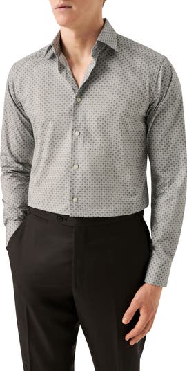 Soft Italian cotton in a floral pattern brings comfort and versatility to a dress shirt designed with a low, stay-tucked hem and styled to brighten any semiformal or formal look. The crease-resistant finish keeps you crisp and smart, even when you travel.