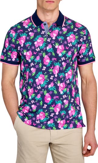 Slim Fit Floral Skull Cotton Stretch Pique Polo