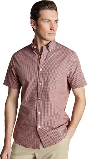 Slim Fit Light Button-Down Collar Non-Iron Stretch Poplin Mini Gingham Short Sleeve Shirt