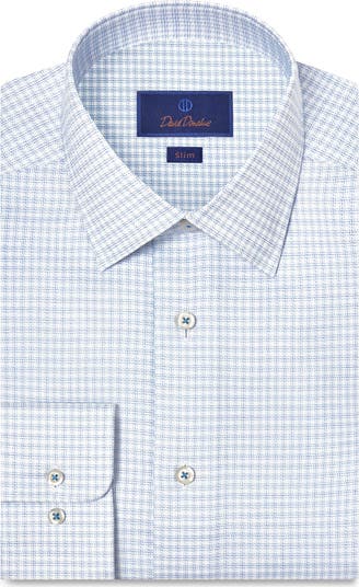 Slim Fit Microcheck Stretch Cotton Twill Dress Shirt