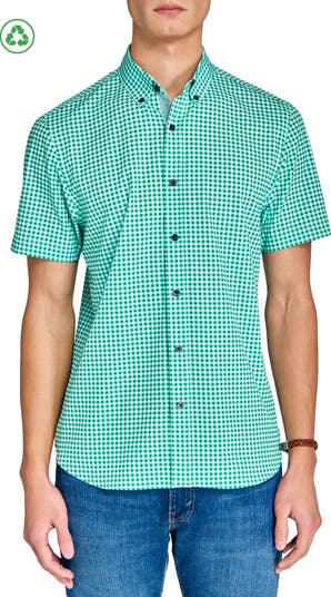 CONSTRUCT Slim Fit Mini Check Recycled 4-Way Stretch Performance Short Sleeve Shirt, Alternate, color, Green/White