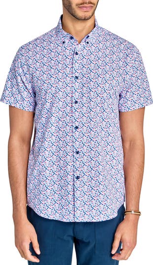Slim Fit Mini Floral Stem Recycled 4-Way Stretch Performance Short Sleeve Shirt