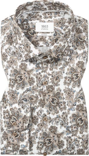 Tailored from textured cotton dobby and swirling intricate paisleys, this wrinkle-resistant dress shirt makes a versatile addition to your semiformal and elevated-casual wardrobes. It pairs well with smooth, solid fabrics, but there's always room for mixing patterns and colors to define your personal look.