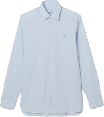 Crisp and smart, this pinstripe shirt cut from cotton-blend poplin sports a touch of stretch to keep you moving comfortably day and night.