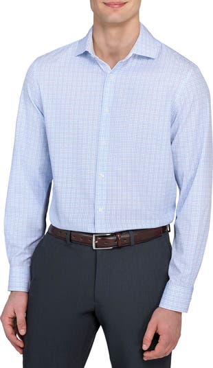 Stretchy, sweat-wicking fabric made in part with recycled fibers keeps you moving comfortably day and night in a travel-friendly dress shirt that dries quickly and resists odors to help you look and feel fresh. Crisp patterning makes it ideal for semiformal occasions, while contrast panels add a subtle pop when you open the collar and roll up the sleeves.