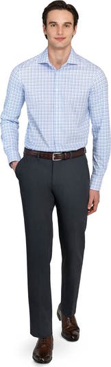 With crisp twill in front and soft jersey at the back and sleeves, this slim-tailored shirt delivers the refined style of a dress shirt and the comfort and flexibility of knit cotton. The curved hem works tucked or untucked, while the machine-washable fabric makes for easy care.