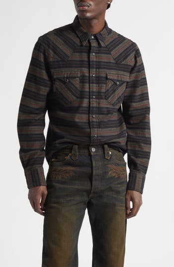 A Western classic with a tightened-up profile, this slim-fit shirt pairs yarn-dyed cotton twill with pointed accents that frame the body in all the right places. Polished snaps add a crisp click of hardware.