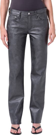 A smooth metallic sheen maximizes the modern glamour of these slim-fitting leather pants that are ready to take your outfit up a notch.