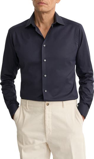 Slim Fit Solid Navy Cotton Twill Dress Shirt