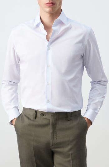 Move through the office or your next event in style and comfort in this sleekly striped button-up shirt cut for a slim fit.