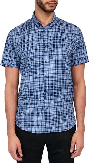 Turn heads with the Tudor Textured Check Short Sleeve Shirt. Featuring a soft, stretchy finish, this shirt is designed to keep up with your active lifestyle. The contrast print inside the collar and throughout adds an elevated touch to its bold design.