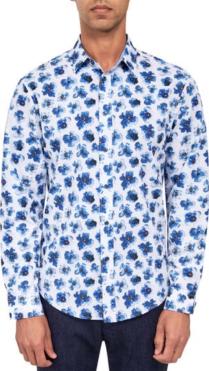 Slim Fit Watercolor Floral 4-Way Stretch Performance Long Sleeve Shirt