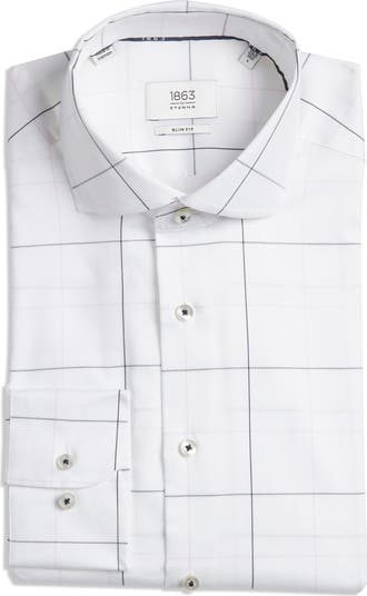 Slim Fit Windowpane Check Non-Iron Cotton Twill Dress Shirt