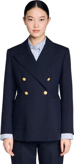 Fitted wool suit jacket with a lapel collar and a double-breasted fastening.