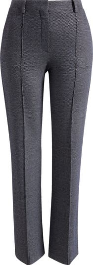 A stretchy herringbone jacquard knit presents a polished look on these slim pants structured with pintucks down the front legs.