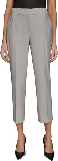 Casually polished pants are offered with a flat front and an ankle-skimming length.