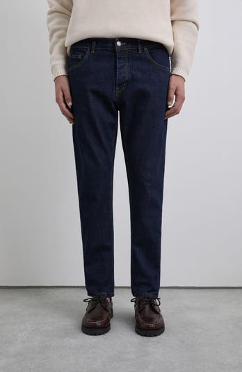Denim trousers made of 100% cotton and slim fit, button and zip fastening and side and back pockets