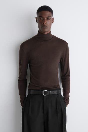 This rollneck top is made from a fine 100% wool-jersey that's naturally warm and has a soft hand feel. Rendered in a classic black tone, it's cut in a slim shape that makes it perfect for layering – think styled with tailoring or worn underneath a chunkier knit.